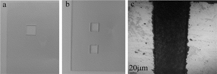 (2) 在噴口口徑為0.4mm、水束壓力為20MPa、激光功率為48W、切割速率為20mm/s時(shí)進(jìn)行玻璃的微水導(dǎo)激光切割。厚度為0.5mm及1.0mm的玻璃試樣的切割表面均比較光滑、基體內(nèi)無(wú)微裂紋存在,切縫寬度約為100μm,但1.0mm厚的玻璃試樣切割邊緣有毛刺及崩邊現(xiàn)象出現(xiàn)。