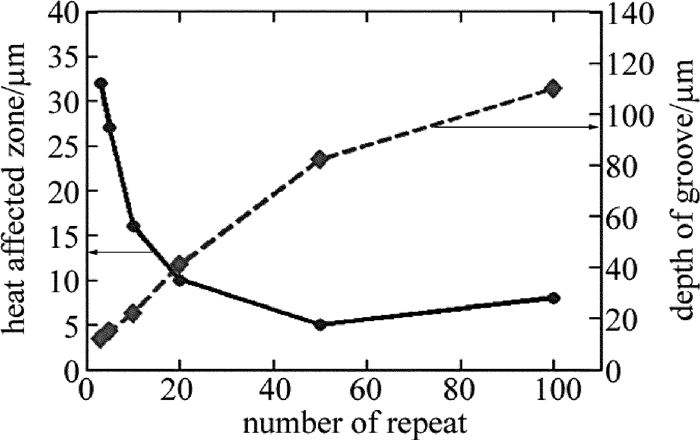 Figure 10.  Relationship among groove depth, heat affected zone and the number of repeat